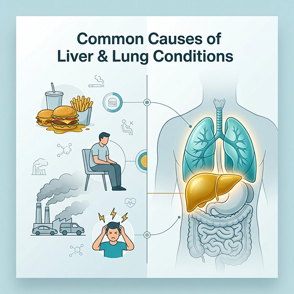 Lifestyle, metabolic or environmental factors are known to cause liver and lung conditions. Poor diet, inactivity, pollution, and weight management challenges are common contributors.