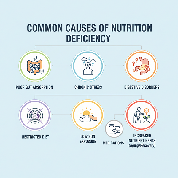 Addressing nutritional deficiencies early helps restore energy, supports immune function, improves mental clarity, and prevents long-term health complications. Proper nutritional balance allows the body to heal, recover, and function at its best.